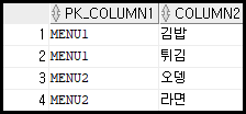 INSERT INTO TEST2 VALUES('MENU2', '라면');