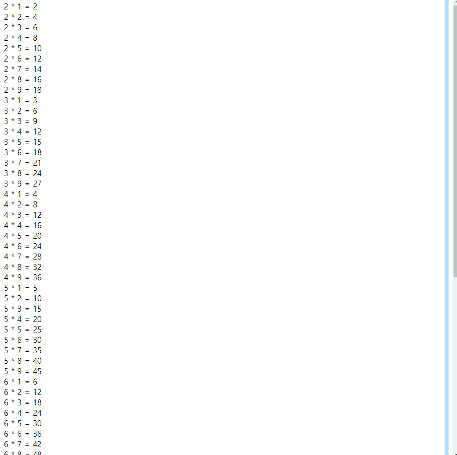for(let j = 2; j<=9; j++) {