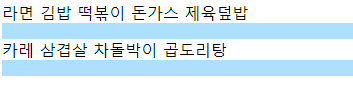이는 출력시 div태그가 속해있는 데이터의 줄을 전부 div의 영역입니다.