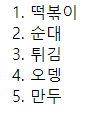 순서가 있는 리스트로, 번호가 표시됩니다.