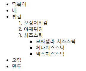 순서가 없는 리스트로, 번호 대신 동그란 원이 표시됩니다.