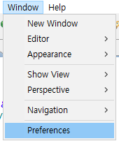 1. 이클립스의 window -> preferences를 클릭합니다.