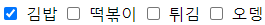 위의 사진에 네모칸에 체크박스에 클릭을 하지 않고 '김밥'이라는 텍스트에 마우스 클릭을 하면