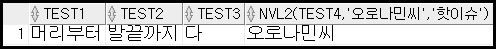 SELECT TEST1, TEST2, TEST3, NVL2(TEST4, '오로나민씨', '핫이슈')
