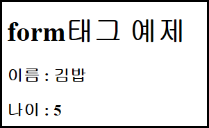 이름과 나이를 input의 text 타입으로 받았고, submit 타입의 input 태그로 form 태그 안에 있는 내용들을 전송하도록 설정했습니다.