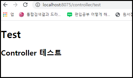 <h2>${test}</h2>가 Controller 테스트로 출력 된 것을 확인 할 수 있습니다.