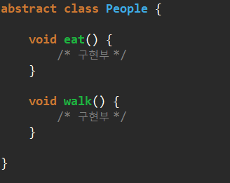 필드, 생성자를 포함할 수 있으며, 반드시 상속을 통해서 구현하여야합니다.