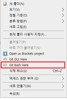 먼저 해당 폴더에 Git Bash Here를 클릭합니다.